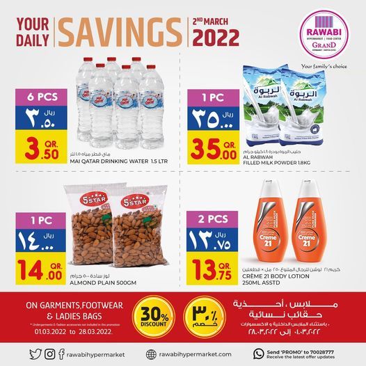 عروض الروابي هايبرماركت قطر 2022 العرض ساري فقط في 2022-03-02 أو حتى نفاذ الكمية
