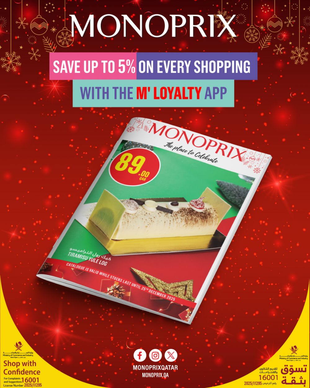 اكتشفوا كتالوج موسم الأعياد لدينا لتجدوا أشهى المأكولات، والهدايا المميزة، والمستلزمات الأساسية التي تُضفي البهجة على يومكم، مع توفير يصل إلى 5% باستخدام تطبيق مونوبراي إم للولاء. العرض ساري حتى نفاد الكمية وحتى 25 ديسمبر 2025.