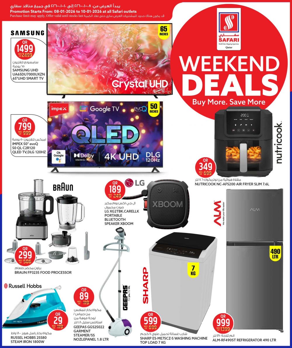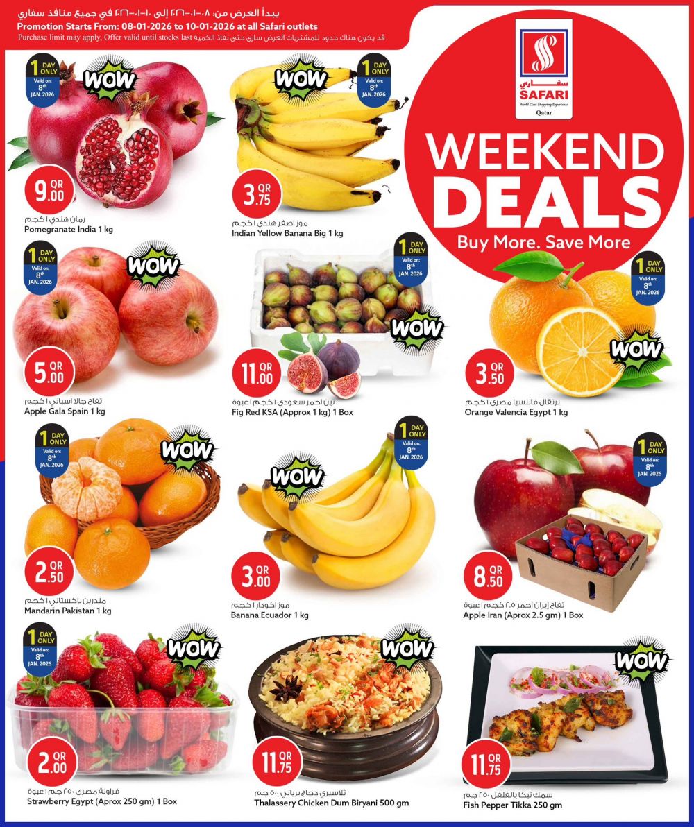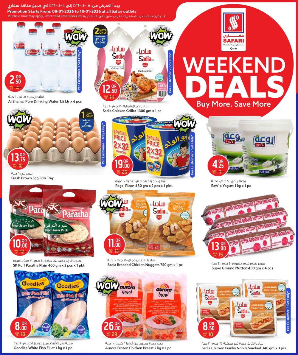 عروض نهاية الأسبوع المميزة متوفرة الآن في سفاري! استمتع بعروض لا تُقاوم على البقالة، والأطعمة الطازجة، والأدوات المنزلية، ومستحضرات التجميل، والملابس، والأجهزة المنزلية، وغيرها الكثير!