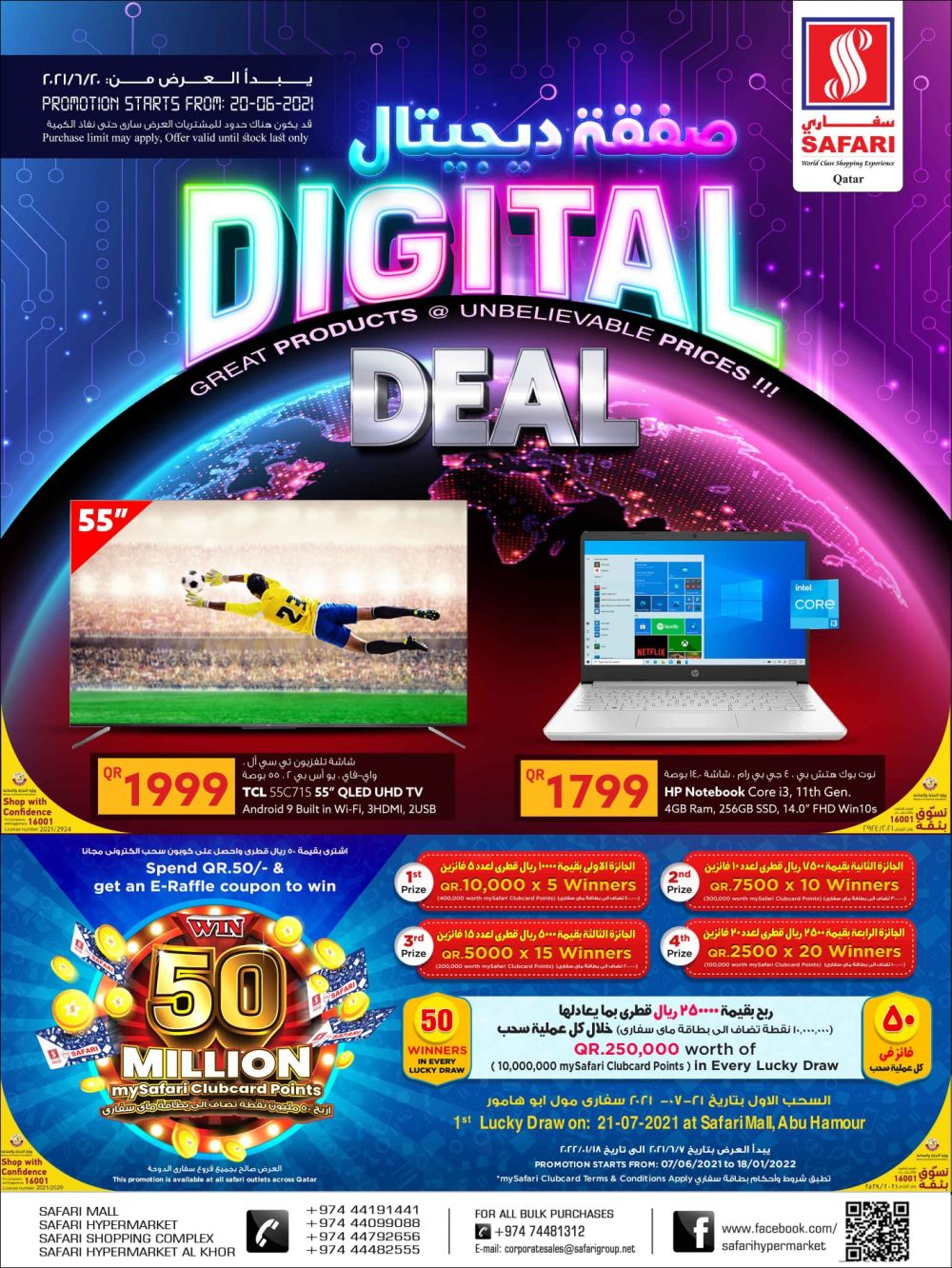 Head to Safari outlets for offers like never before in the digital deal promotion. Promotion starts from 20.06.2021 in all Safari outlets.