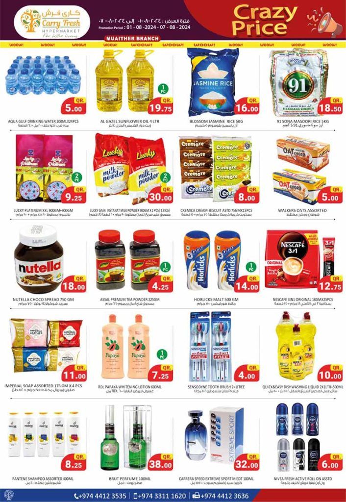 Carry Fresh Hypermarket Qatar offers 2024 Promotion Valid from 05-08-2024 to 07-08-2024 or until stock lasts.