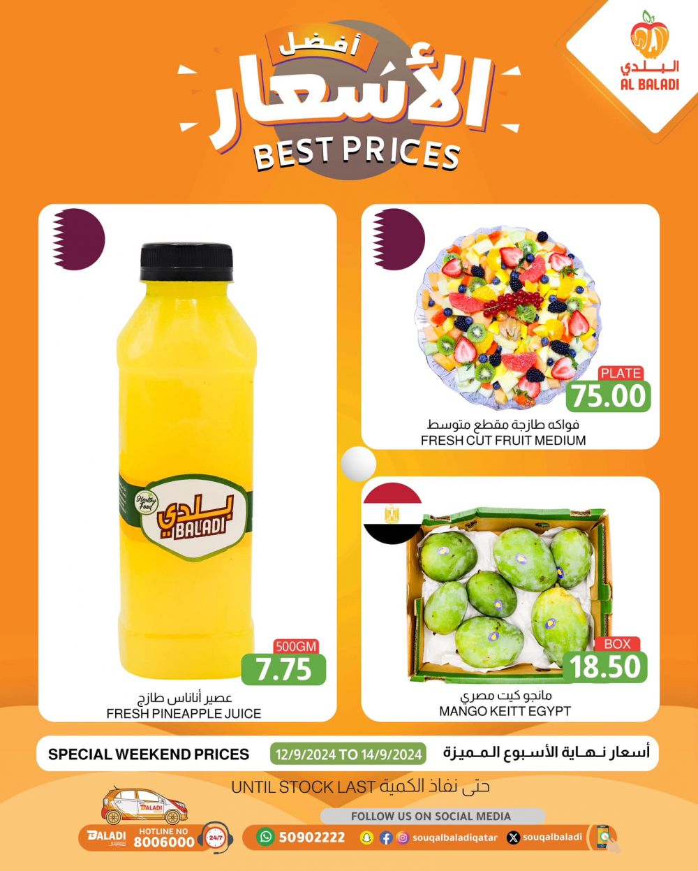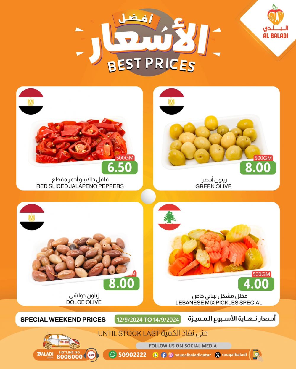 Available at Al Baladi Premium - Lusail branch, Al Gharrafa branch, and all Al Baladi outlets