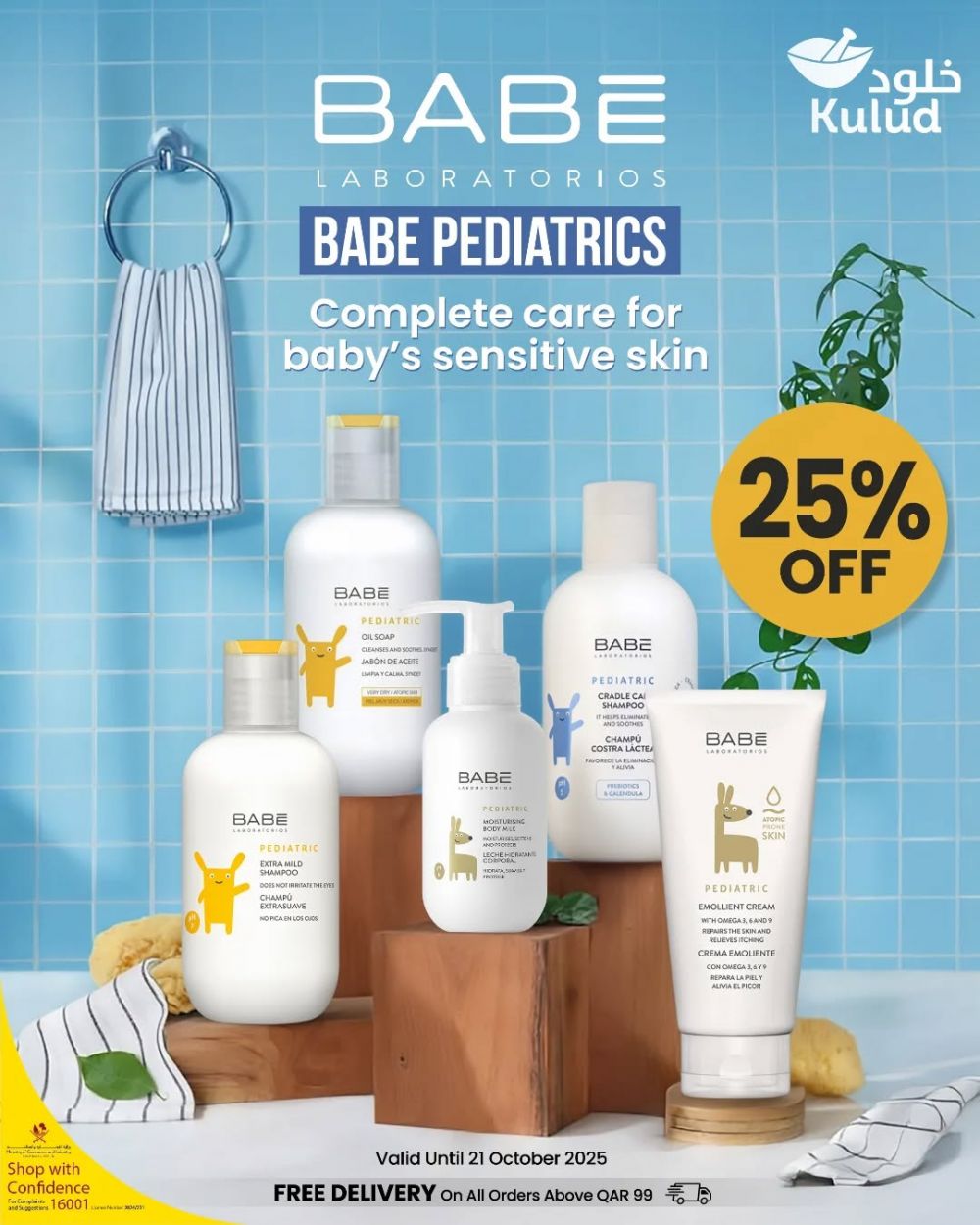 KULUD Pharmacy Qatar offers 2025 Soft. Safe. Pediatric-tested. BABÉ Pediatric brings complete care from bath to SPF. Enjoy 25% OFF today