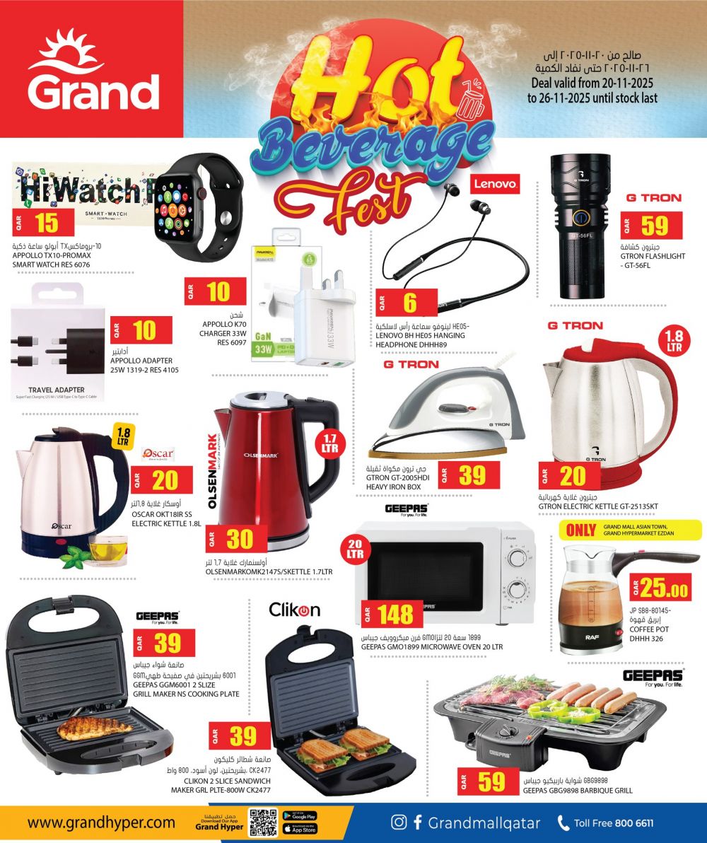 “Experience the taste of winter like never before! Grand Hyper’s Hot Beverage Fest brings you a wide selection of premium tea, rich coffee, elegant tea cups, insulated flasks, home grills, and much more—specially priced to warm your days and nights. Stock up now and celebrate the season with comfort, flavor, and big savings!”