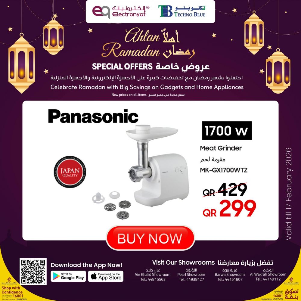 TECHNO BLUE Qatar Offers 2026 Ahlan Ramadan! Make cooking easier this Ramadan with smart Small Domestic Appliances at special prices.